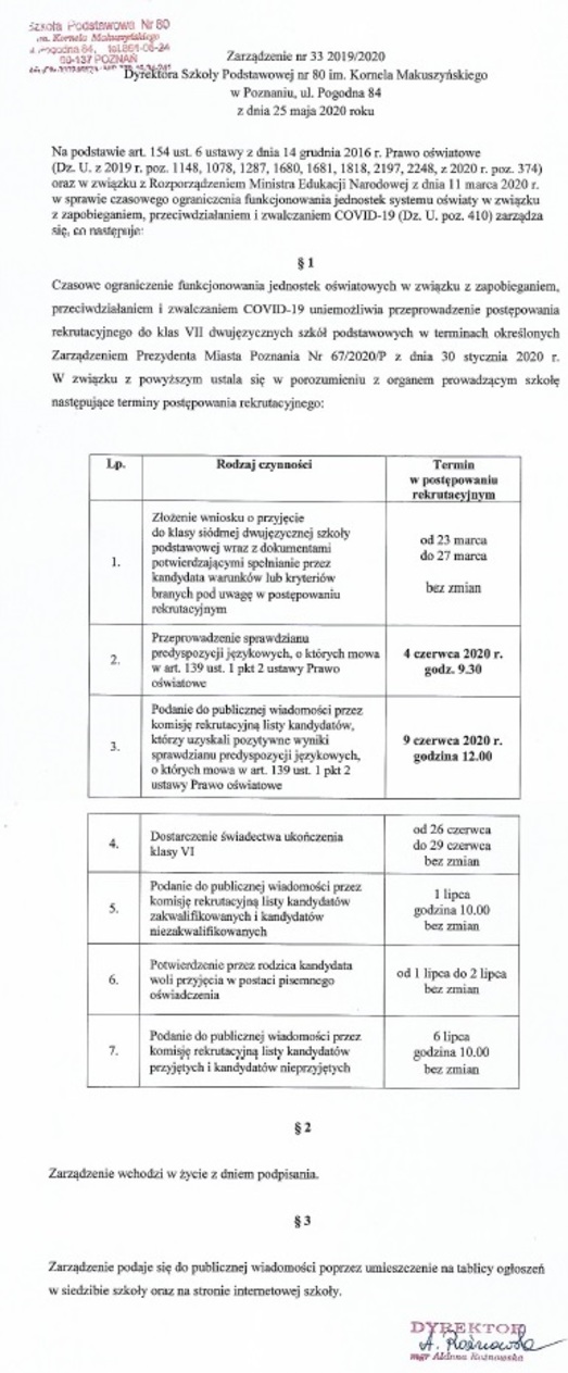 Dyrektora Szkoły Podstawowej nr 80 im Kornela Makuszyńskiego w Poznaniu