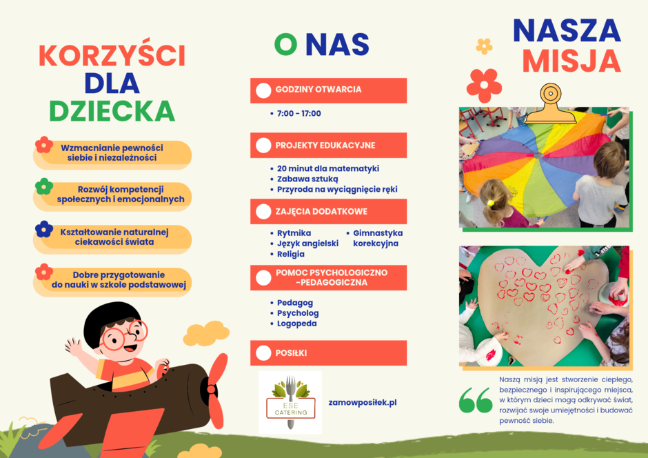 Naszym celem jest stworzenie ciepłego, bezpiecznego i inspirującego miejsca, w którym dzieci mogą odkrywać świat, rozwijać swoje umiejętności oraz kompetencje społeczne i emocjonalne.