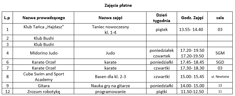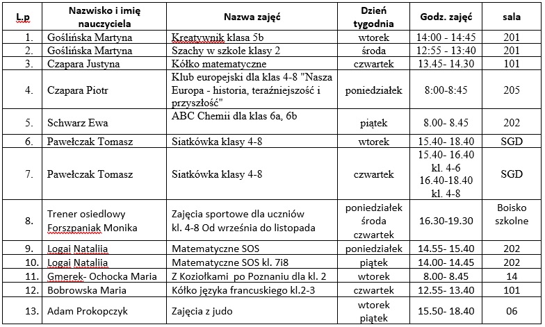 Zajęcia pozalekcyjne